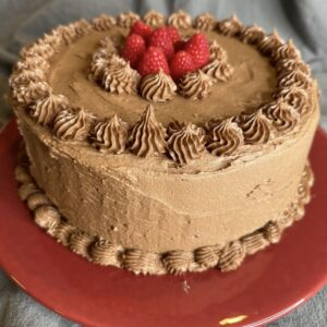 - Once frosted, serve the cake within a few hours. Do not omit the xanthan gum; it is crucial to the structure of the cake.Grease two 9-inch round cake pans, line bottoms with parchment paper, and grease parchment. Adjust oven rack to lower-middle position and heat oven to 350°. Microwave oil, chocolate, and cocoa together in bowl at 50% power, stirring occasionally, until melted, about 2 minutes. Whisk mixture until smooth, then set aside to cool slightly. In separate bowl, whisk flour blend, baking powder, baking soda, xanthan gum, and salt together.In large bowl, whisk eggs and vanilla together. Whisk in sugar until well combined. Whisk in cooled chocolate mixture and milk until combined. Whisk in flour blend mixture until batter is thoroughly combined and smooth.Divide batter evenly between prepared pans and smooth tops. Bake until toothpick inserted into center of cake comes out clean, 28 to 32 minutes, switching and rotating pans halfway through baking.Let cakes cool in pans on wire rack for 10 minutes. Run knife around edge of cakes to loosen. Remove cakes from pans, discard parchment, and let cool completely on rack, about 1 1/2 hours. (Cake layers can be wrapped tightly in plastic wrap and stored at room temperature for up to 1 day.)To make frosting.If the shortening is not at room temperature, you can soften the shortening in the microwave for 15-20 seconds (or until you can stir it and it's creamy). Cream the shortening and plant butter together until smooth and silky in a stand mixer. Add the powdered sugar and cocoa powder slowly to prevent a "cloud". Add chocolate almond milk and vanilla. Mix together until smooth. If the frosting is too stiff, add more almond milk, 1 tablespoon at a time, until you reach the desired consistency. If the frosting is too thin, add powdered sugar ¼ cup at a time to thicken.HAPPY EATING!!