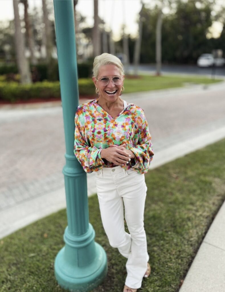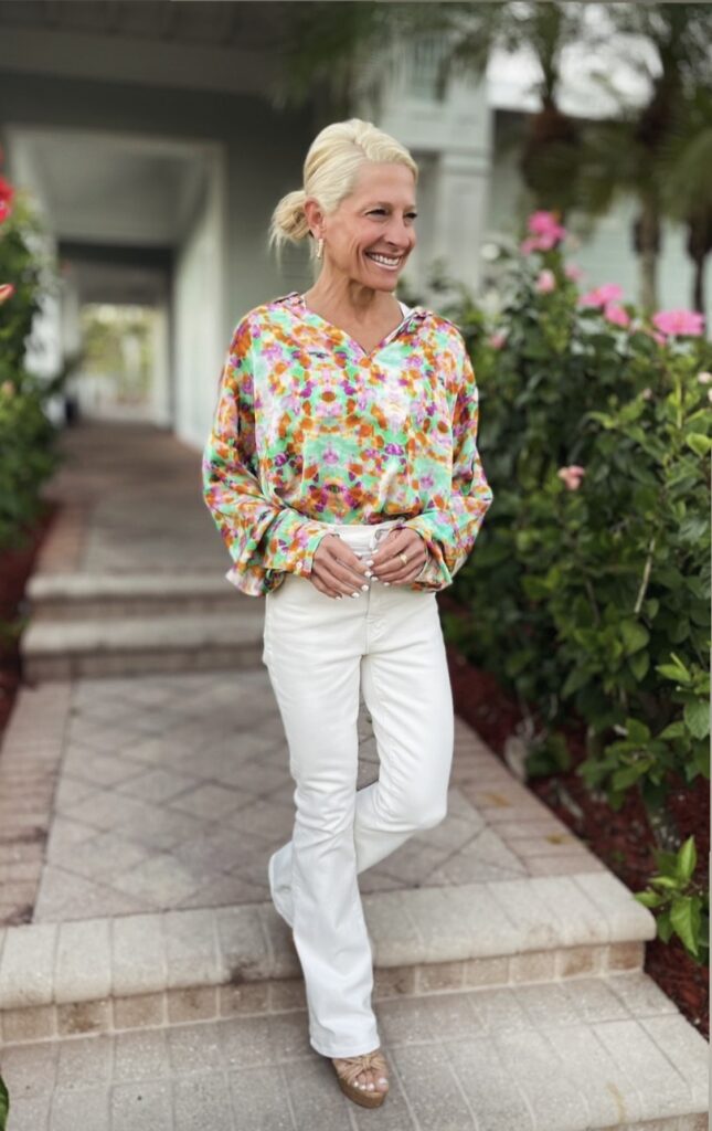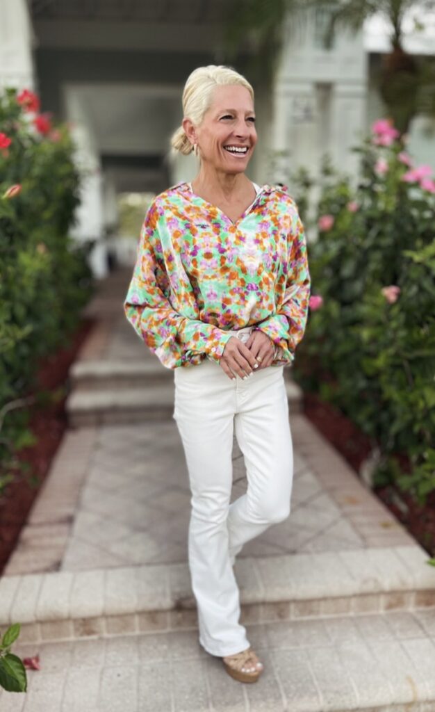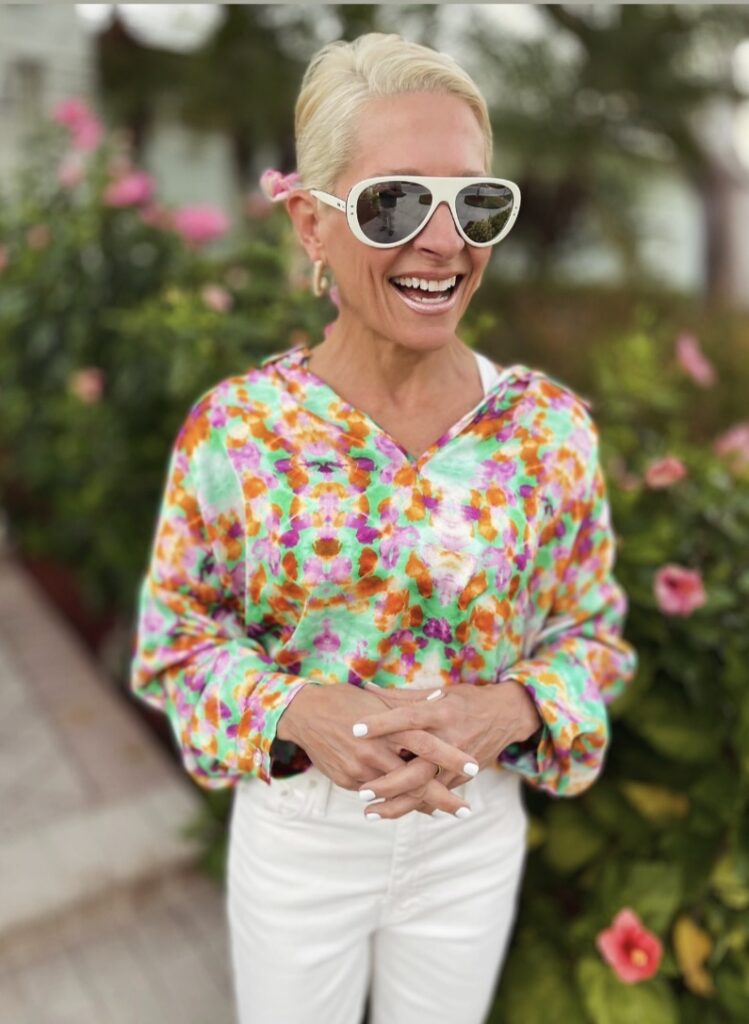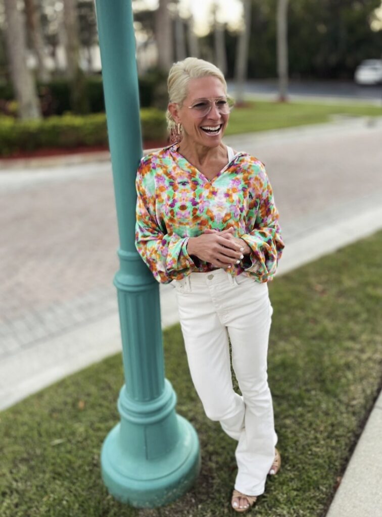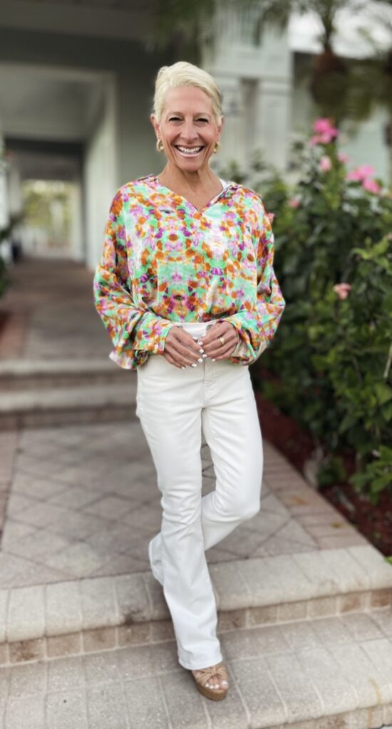 I styled these jeans with a Grungemama blouse (no longer available I linked options for you below), Schutz Khari block platform heels, and I gave you my options for sunglasses, and readers to pair with this outfit.